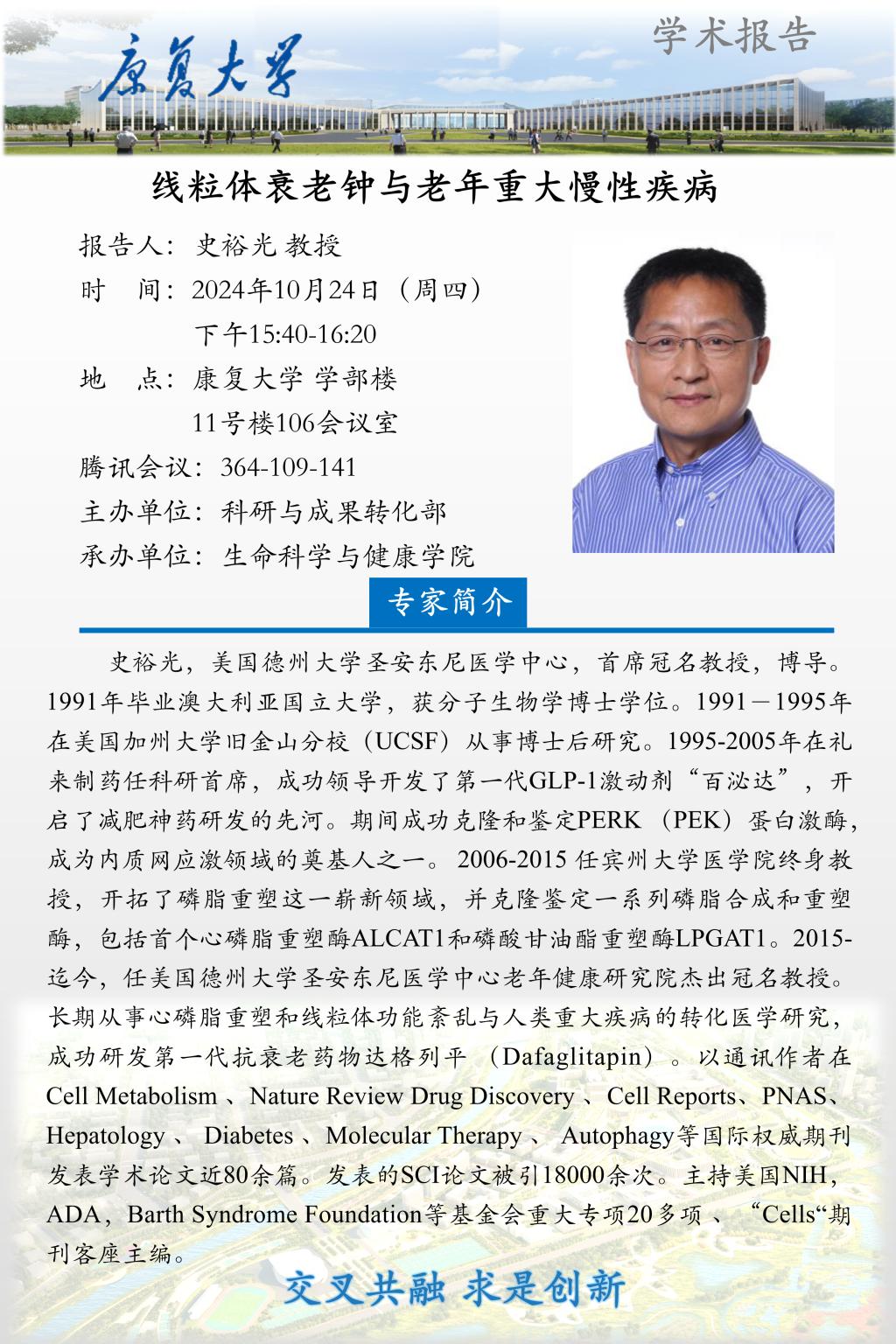 学术报告:“线粒体功能与疾病”主题论坛