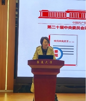 党课上,安琨系统解读了党的二十届四中全会的重大意义与核心成果,重点阐述了“十五五”规划中“健康中国建设”、“加快实现高水平科技自立自强”等重要部署。她结合康复大学新型研究型大学的定位,分析了在全面推进健康中国建设与积极应对人口老龄化的背景下,生命科学学科所面临的重大机遇与时代使命。