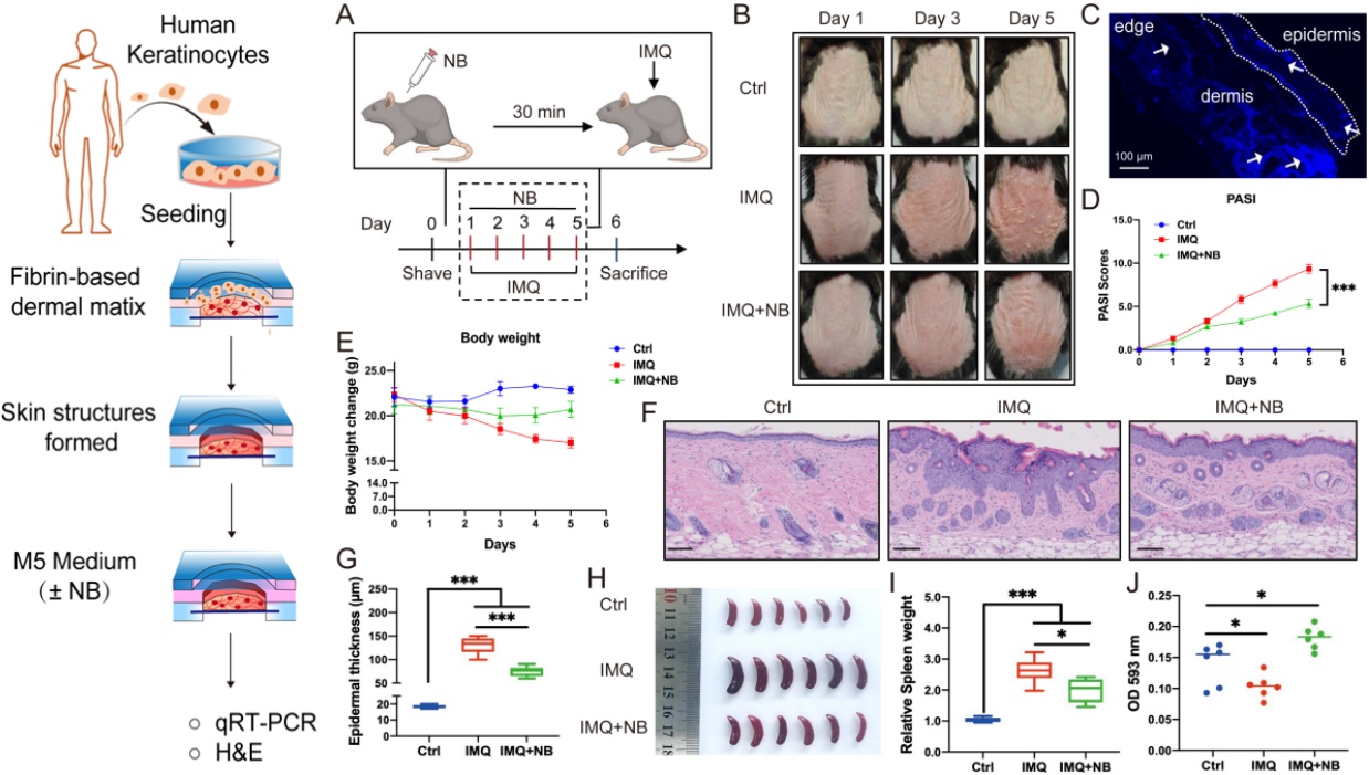 图3 NB对体内体外银屑病模型改善效果验证