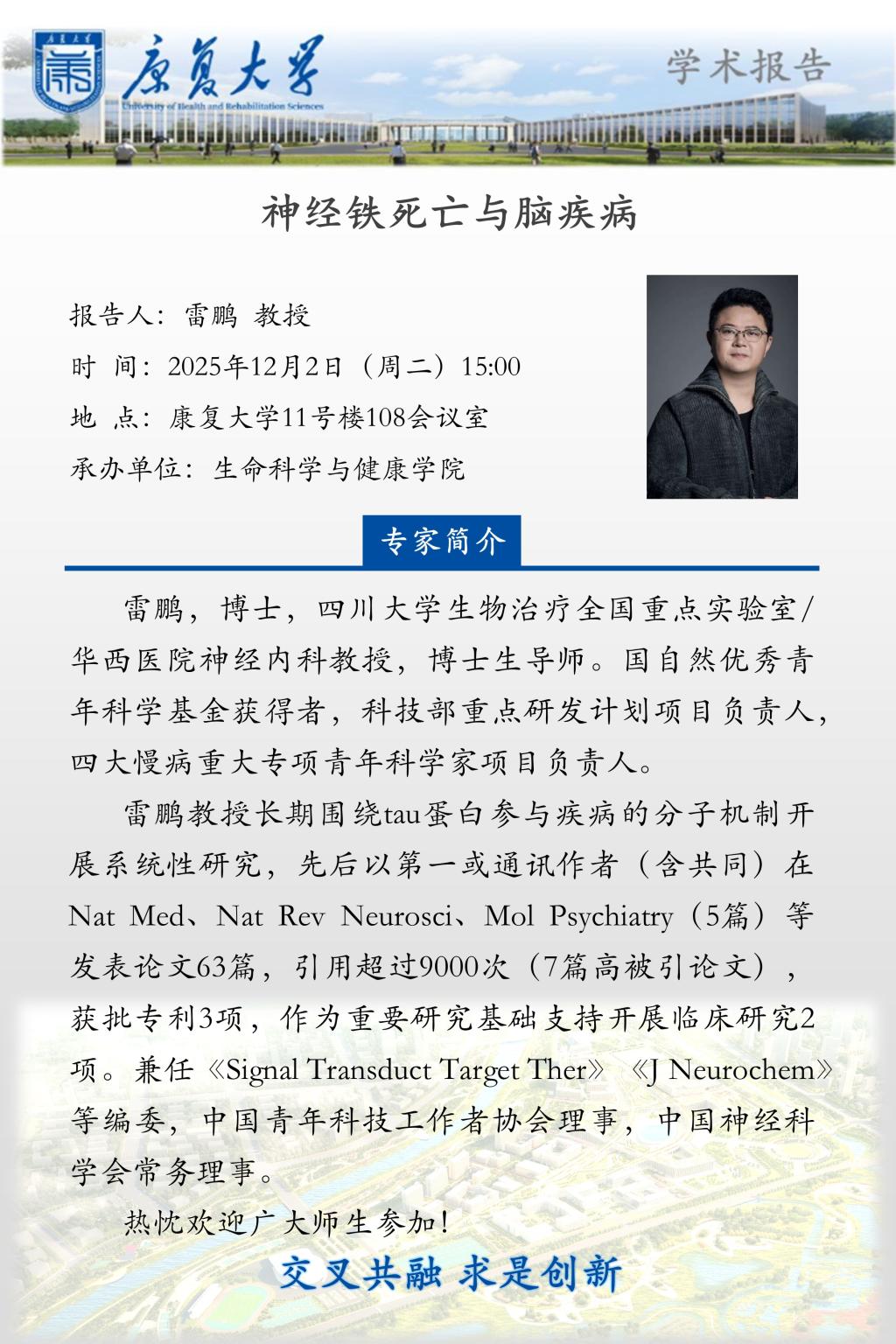 学术报告:神经铁死亡与脑疾病