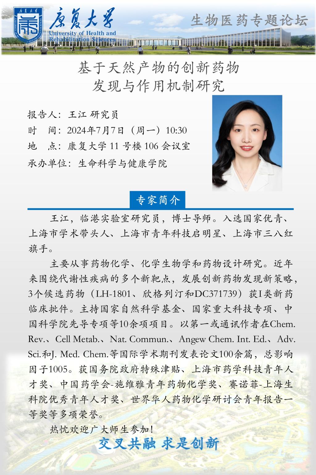 学术报告:基于天然产物的创新药物发现与作用机制研究