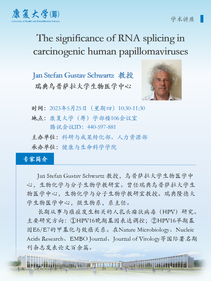 学术讲座:The significance of RNA splicing in carcinogenic human papillomaviruses