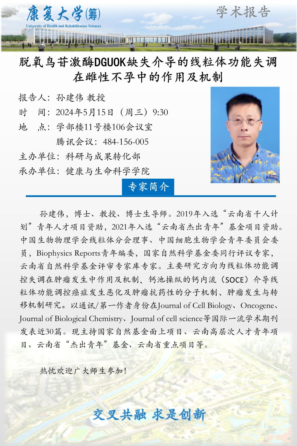 学术报告:脱氧鸟苷激酶DGUOK缺失介导的线粒体功能失调在雌性不孕中的作用及机制