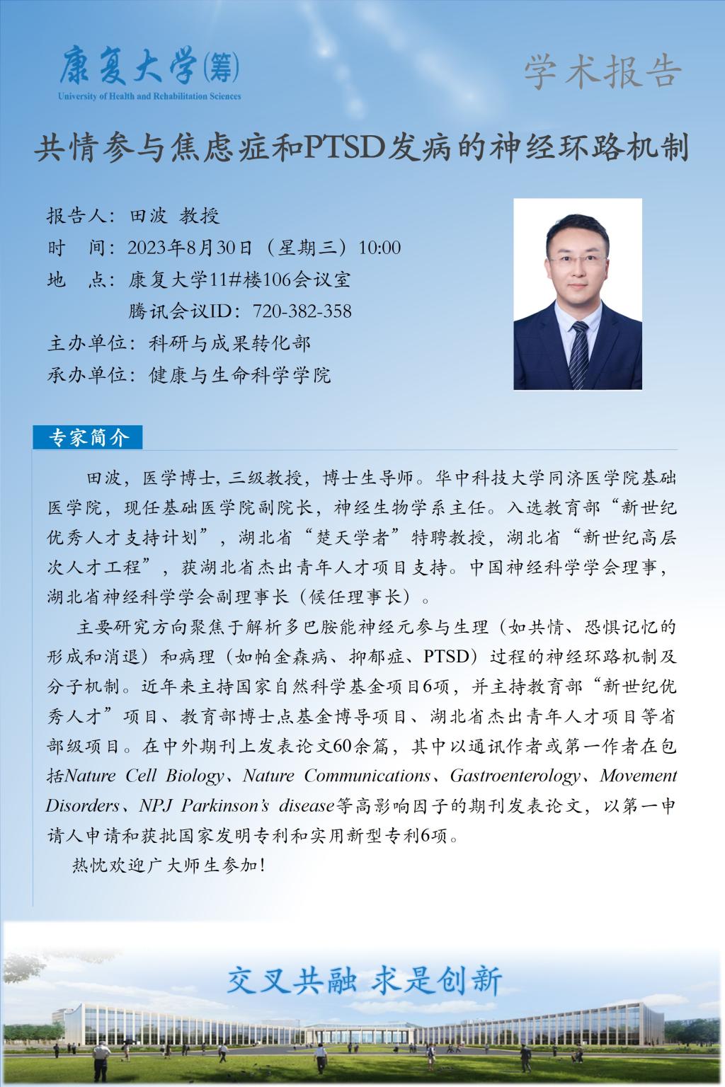 学术报告:共情参与焦虑症和PTSD发病的神经环路机制